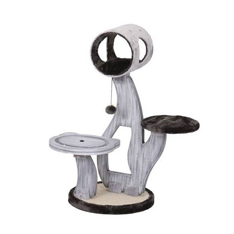 Adoptez cet arbre à chat sans hésitation ! Votre chat adorera cet endroit unique ! D'une stabilité parfaite malgré son faible encombrement. Offrant plusieurs plateaux pour le repos, le jeu et l'observation. Une plateforme en haut pour se cacher ou se reposer. Avec une balle accrochée pour des moments de jeu sans fin. Le socle est également équipé d'un griffoir pour satisfaire les instincts de griffades de votre chat intrépide !